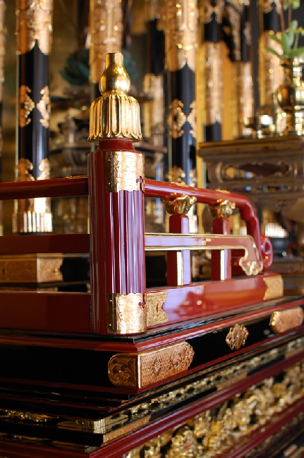 須弥壇も修復で輝きを取り戻した